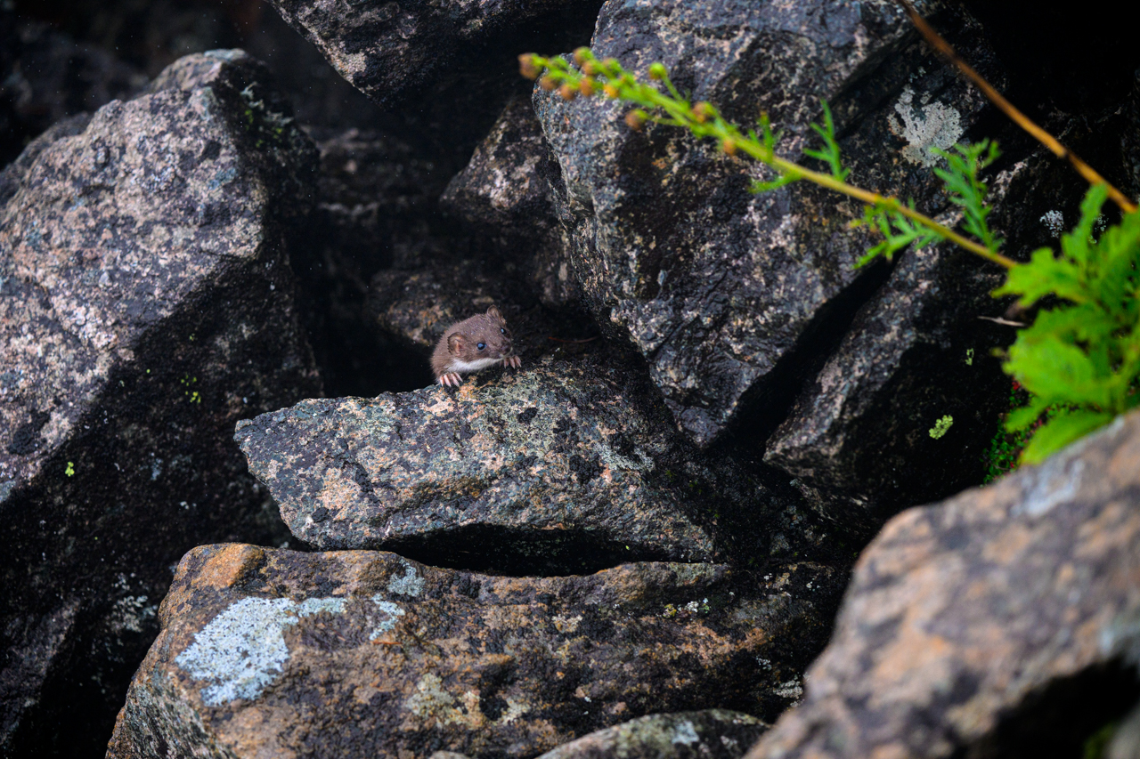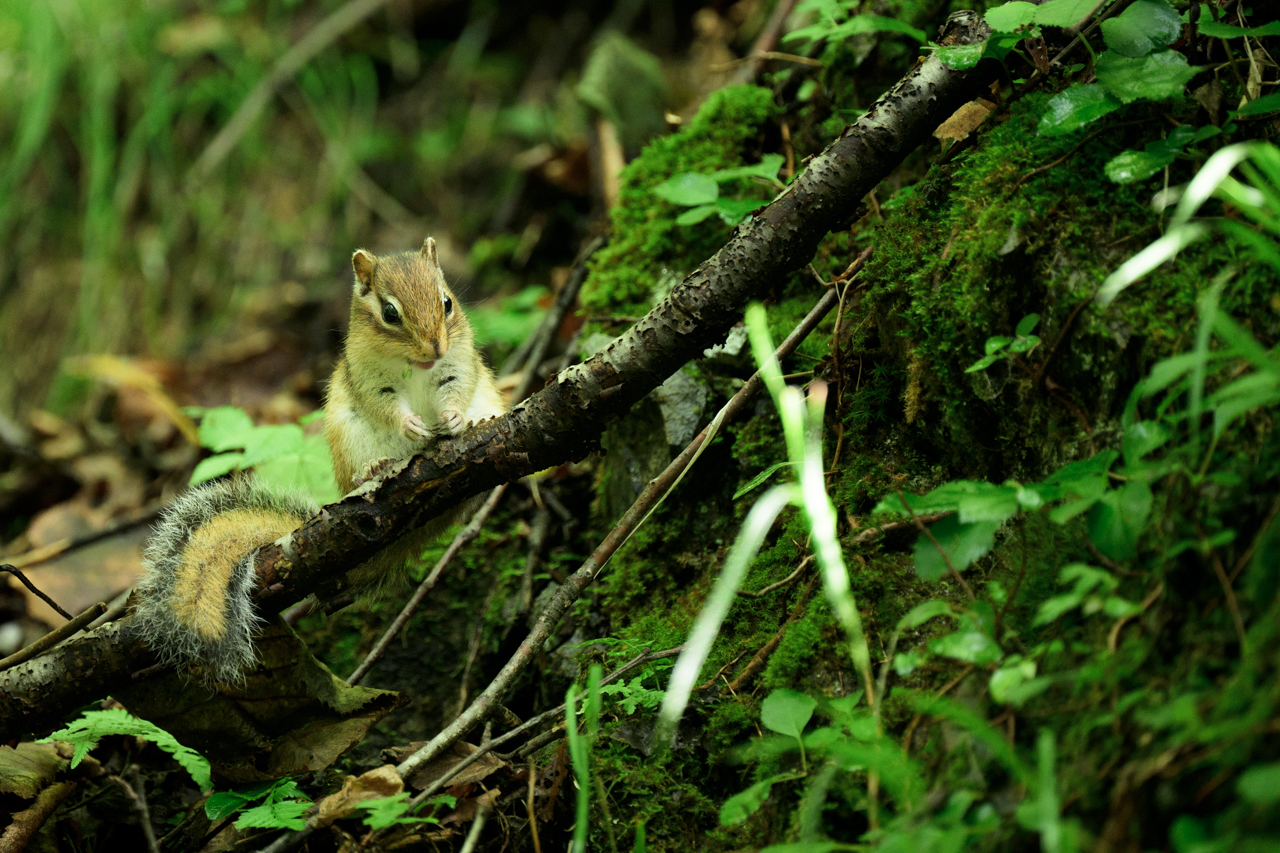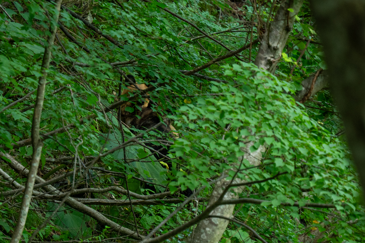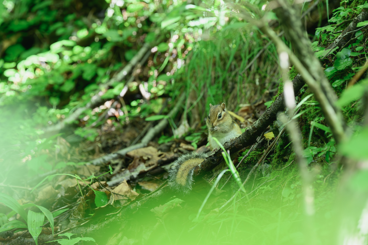 この日は、二日目の天候こそ良くなかったものの、林道を往復する一日目と三日目は天気に恵まれ、エゾオコジョ、キタキツネ、エゾリス、エゾシマリスなどの野生動物の姿を見ることができた。水たまりにはオタマジャクシの姿も。茂みの中に佇む親子のヒグマや、新しい熊の足跡など、森の息遣いを間近に感じる体験であった。なお、山頂周辺にはナキウサギの住処があるが、今回の山行では発見することができなかった。