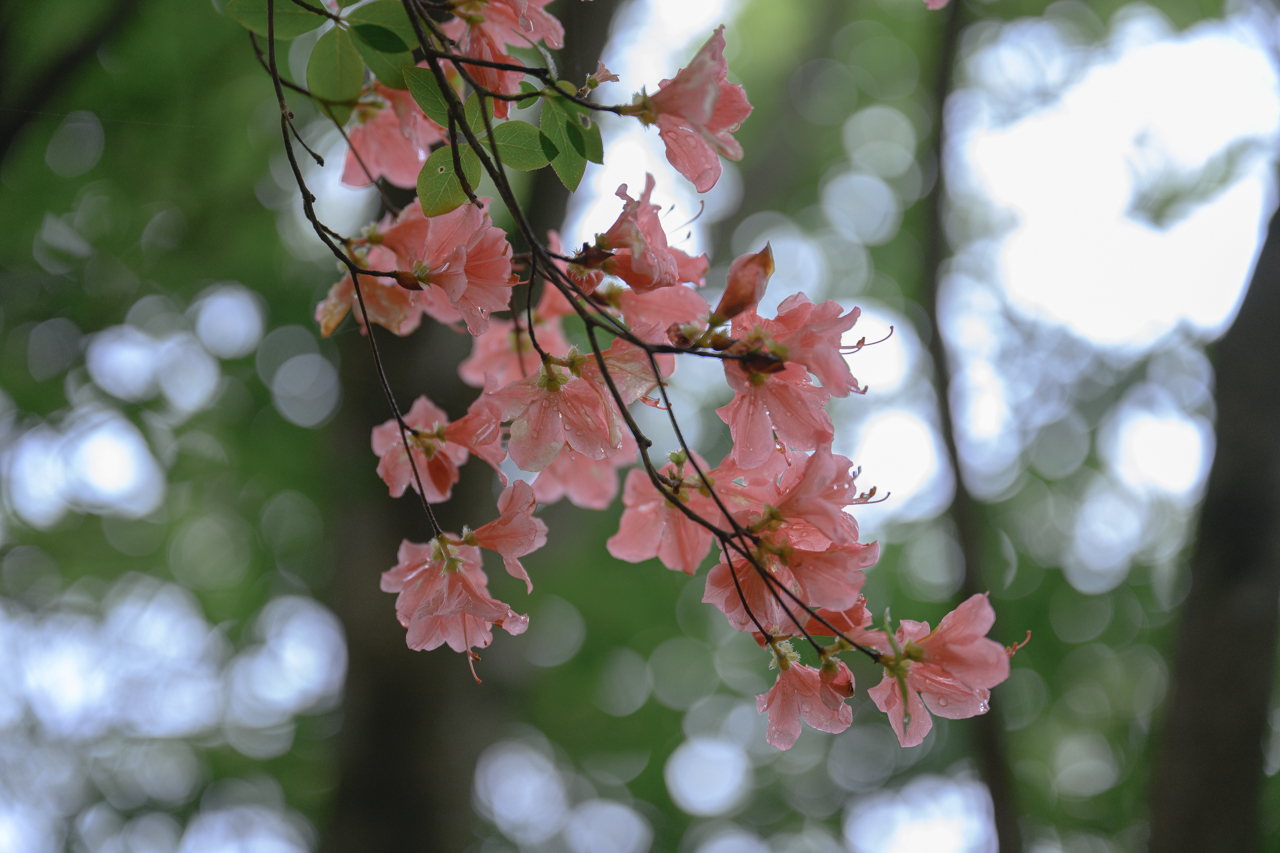 天城山は伊豆半島中央部に広がる連山であり、万三郎岳(1,406 m)や万二郎岳(1,299 m)を中心とする峰々から成る。富士箱根伊豆国立公園の一角をなす山域で、展望は多くないが、ブナやヒメシャラを主体とした原生林が広がる点が大きな魅力である。加えて、5月から6月にかけて見頃を迎えるアマギシャクナゲや遅咲きのアマギツツジ(写真1枚目。種の同定には確信がない)が群生し、いずれも伊豆半島の固有種である点も特徴的である。