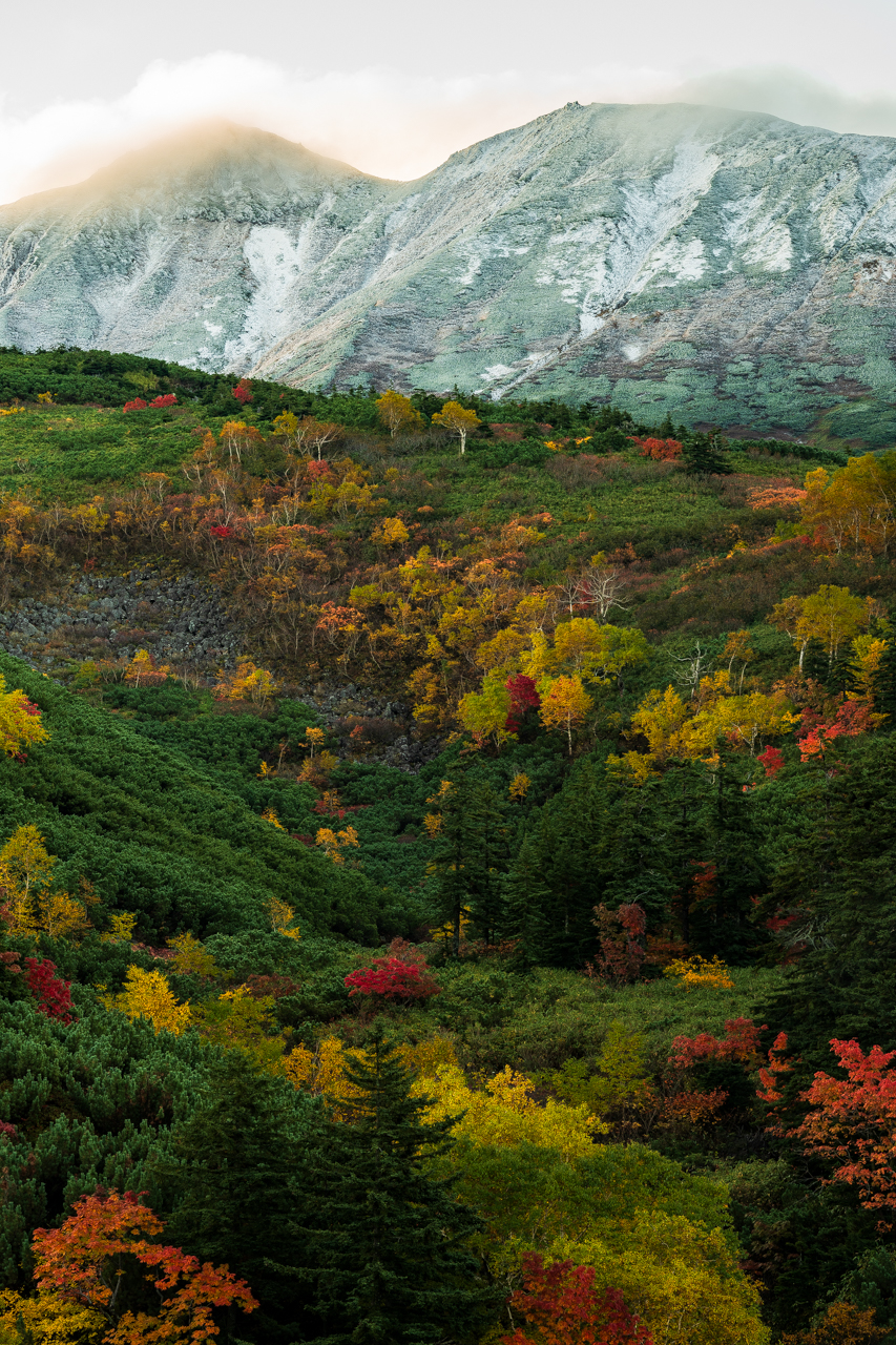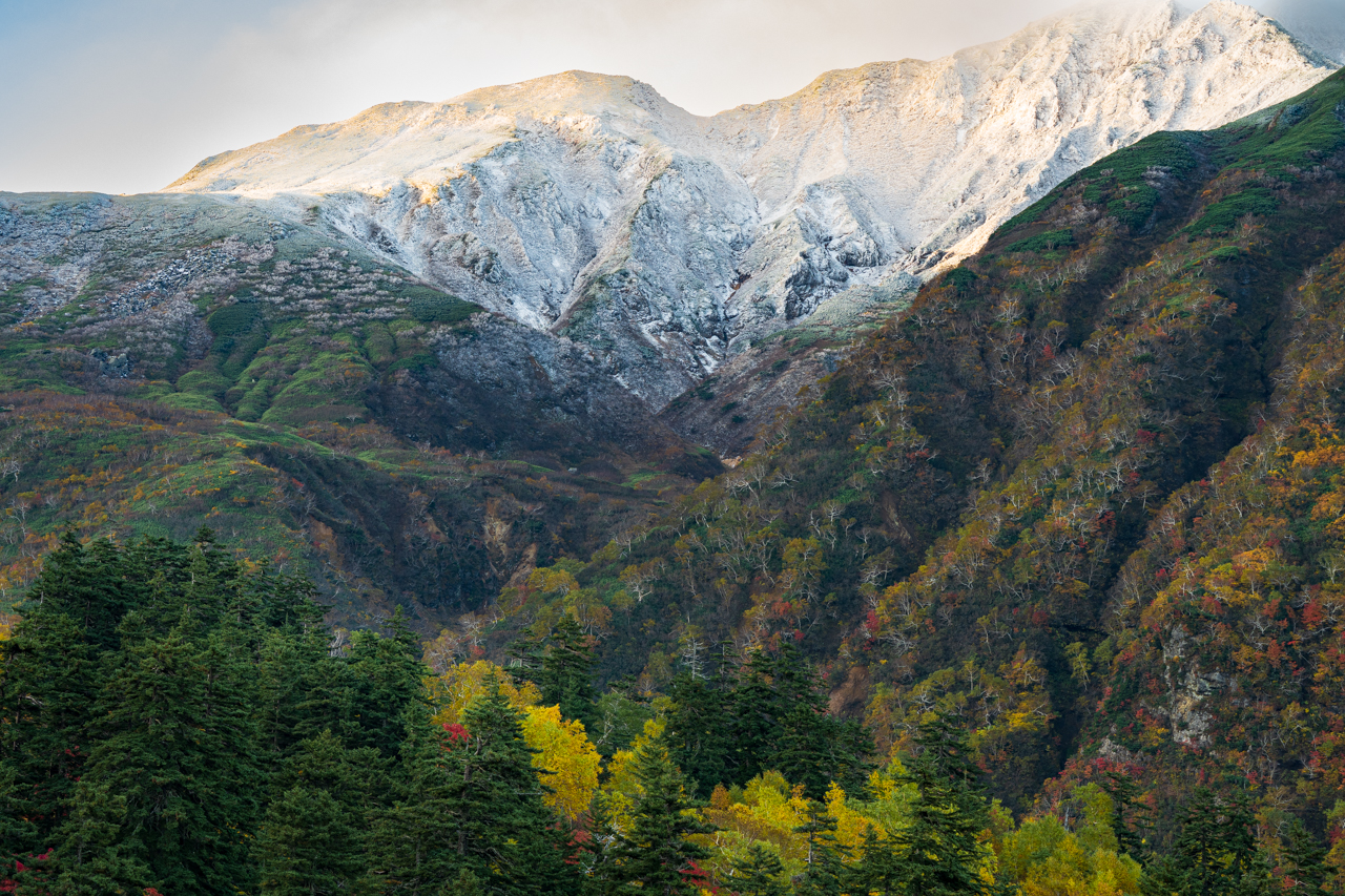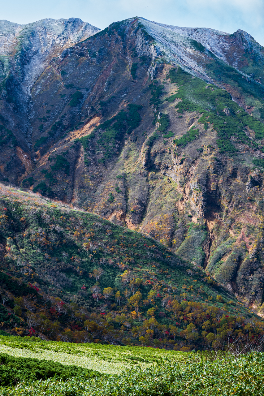 2年前(2023年)の9月に十勝連峰を訪れた。ちょうどその頃は紅葉も見事だったが、さらに運のよいことに、十勝の山々には一足早い雪が積もっていた。訪れた日は快晴であったものの、白い山容は残り、美しい三段紅葉の景観を見せてくれた。