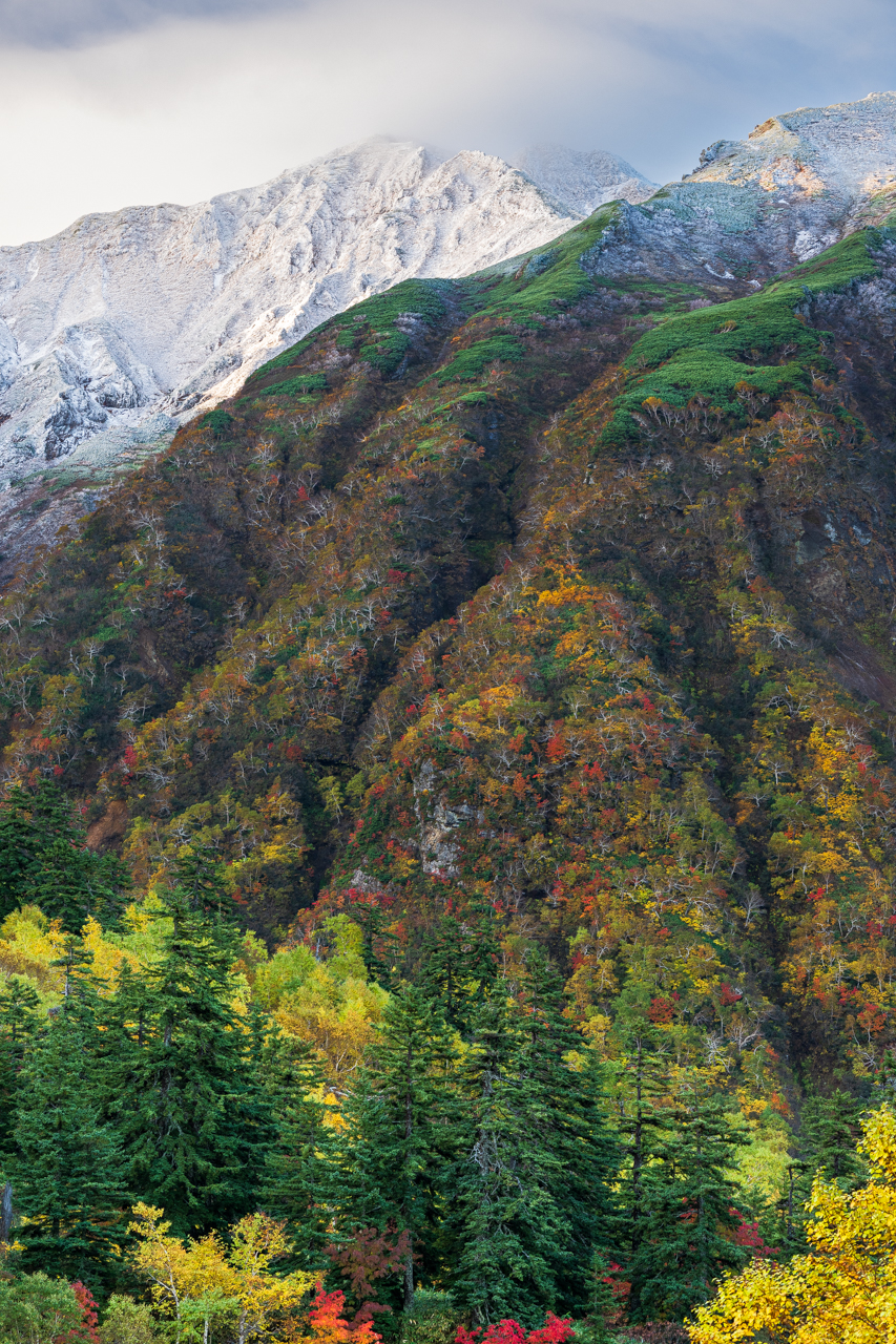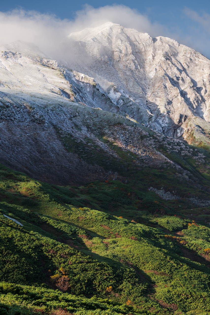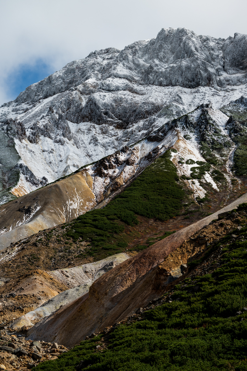 2年前(2023年)の9月に十勝連峰を訪れた。ちょうどその頃は紅葉も見事だったが、さらに運のよいことに、十勝の山々には一足早い雪が積もっていた。訪れた日は快晴であったものの、白い山容は残り、美しい三段紅葉の景観を見せてくれた。